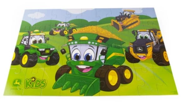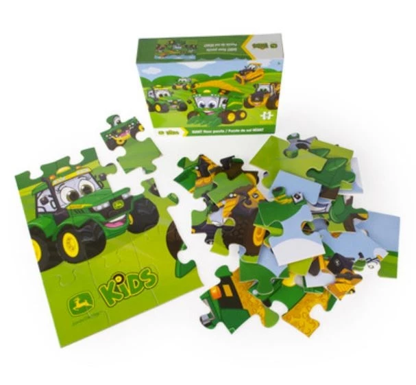 Have fun on the farm with this GIANT John Deere Kid’s Floor Puzzle! The 36 large pieces are each about 6×4 inches, which is the perfect size for smaller hands to play with as they perfect fine motor skills and hand-eye coordination. Put together, they reveal a fun picture featuring kid’s favorite John Deere characters. This kid-friendly puzzle includes a combine, tractor, gator, dump truck and bull dozer, each with a smiling face for kids to see when this large puzzle is done.