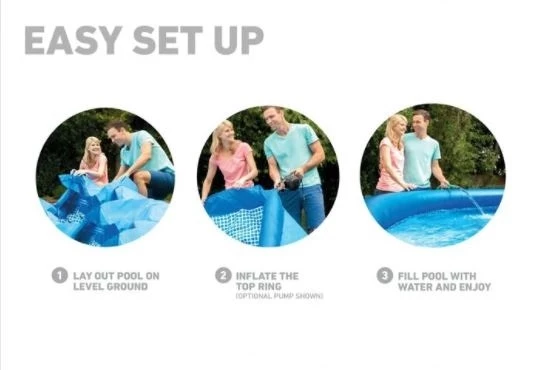 Make a splash all summer long with the Intex® Easy Set® inflatable pool that is easy to set up and store. This pool will make your backyard the place to be all summer as your family can relax and play. Ready for water in 10 minutes, simply spread out on level ground, inflate the top ring, fill the pool with water, and enjoy the fun.