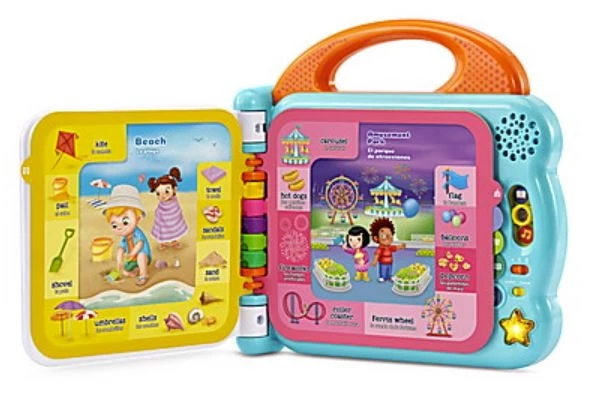 Explore words about places kids love with the 100 Words About Places I Go™ bilingual learning book! Featuring age-appropriate words, this interactive book teaches about people and objects in 12 unique places in both English and Spanish. The school, the park, the farm, the amusement park and more locations can light up your child’s world and spur their imagination. Ten touch-sensitive locations on each page teach about words, colors and counting in the context of 12 unique places. Inspire toddlers and preschoolers who are ready to go places! Intended for ages 18-60 months.
