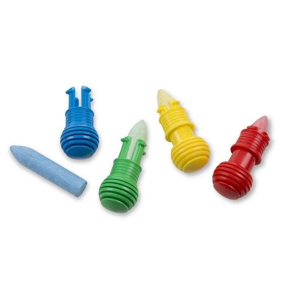 Four sturdy chalk sticks and four durable chalk holders come in this multicolor first chalk set. Adjustable plastic holders have a ridged ball end that’s easy for beginners to grip as well as a textured band to encourage emerging tripod grasp, so it’s great for all ages and abilities. The handy holders also help keep chalk dust off of hands no matter how you grip it! When chalk wears down, it’s easy to adjust the holder, making it possible to get every last artwork out of the green, red, blue, and yellow chalk sticks. Refillable and reusable.