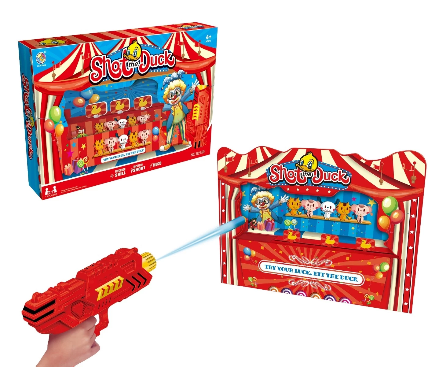 This fun arcade shooting gallery game will take you back to the fair. Battery operated targets move around making the challenge tougher. Point the IR gun at the moving target, aim and shoot. If you are as good as you think, the target will disappear until you take them all down. Age 6+ years.