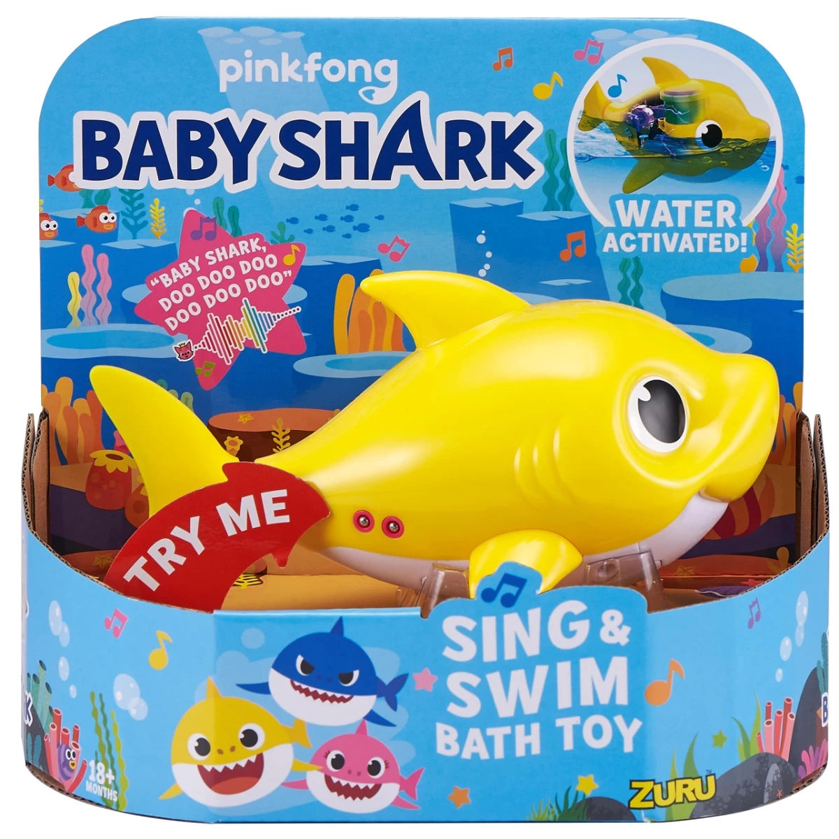 ROBO-TECHNOLOGY: Place Baby Shark in the water and our water-activation technology brings the item to life! Then as it drops in the water, you can sing along with your favourite Baby Shark as it plays the famous Baby Shark song.