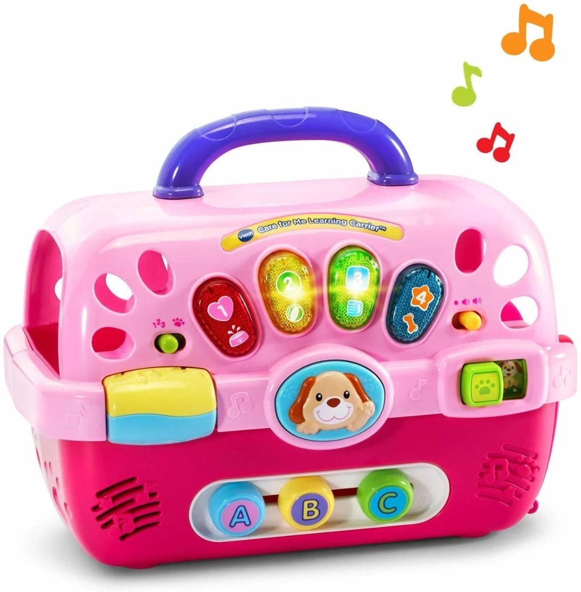 Light-Up Buttons and Letter Beads – Press the buttons or slide the letter beads to introduce numbers, letters, shapes, colors and pet care.